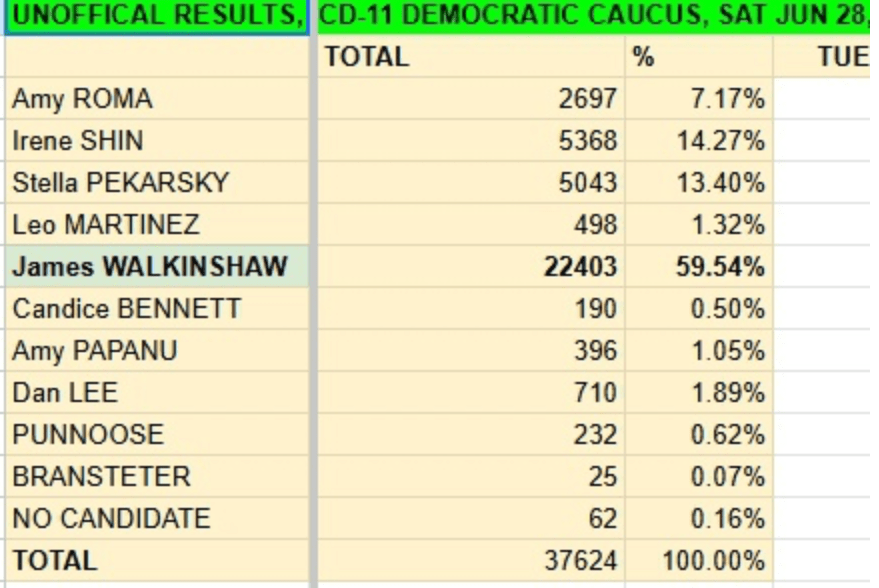 After receiving the endorsement of over 50 local elected officials and community leaders, including Gerry Connolly before he passed away, James entered the primary as the clear front runner and the polling I saw suggested he’d likely receive 45-50 percent of the vote … which is a sizable number considering there were 10 candidates running. But he ended up winning just under 60%, which means that he would have won on the first round ballot even if we’d been using ranked choice voting (a concept many people think we should be using for all primaries).